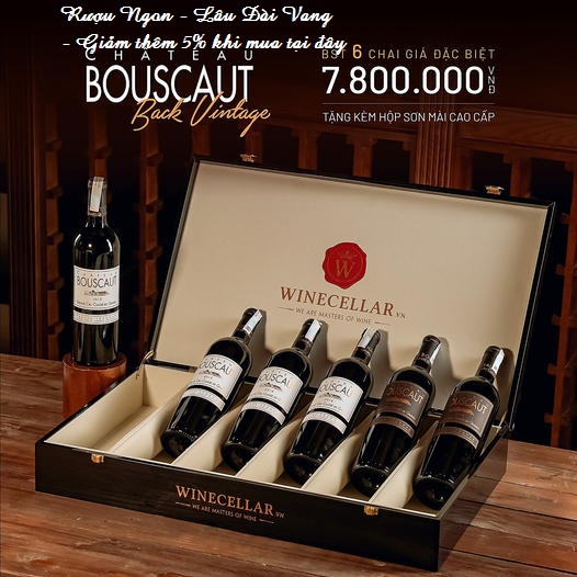 Đừng bỏ lỡ ưu đãi giá đặc biệt cho Bộ Sưu Tập 6 chai Rượu Vang Đỏ Château Bouscaut Back Vintage chỉ với 7.800.000đ tiết kiệm 5.360.000đ (giá niêm yết: 13.160.000đ