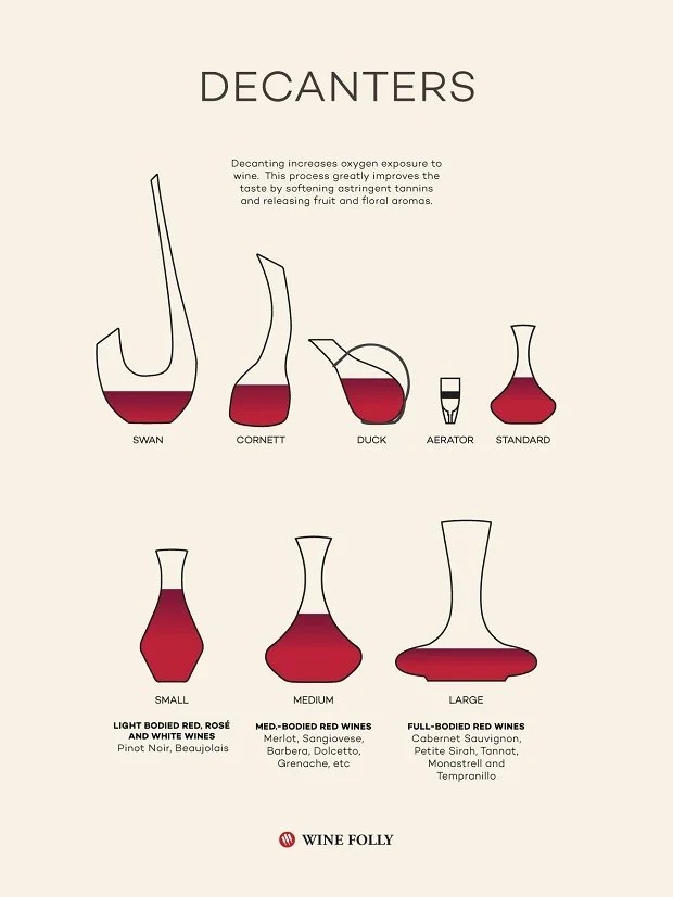 - Vang đỏ trung bình (Barbera, Dolcetto, Merlot, Sangiovese): chọn bình có kích thước trung bình.