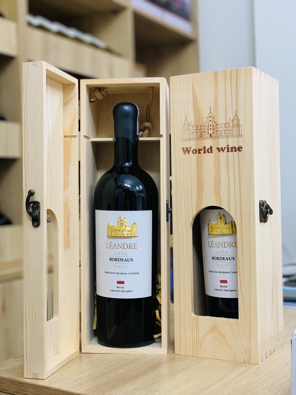 Hộp gỗ 1 chai rượu vang Leandre Bordeuax.
