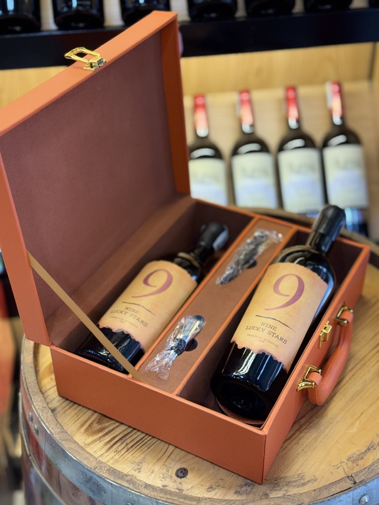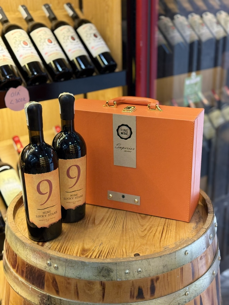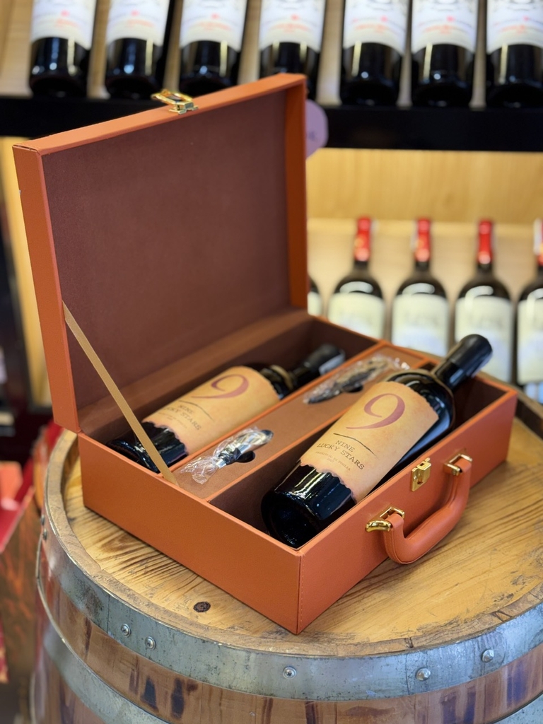 Hộp da 2 chai: Vang Ý 19 độ Nine Lucky Star Primitivo
