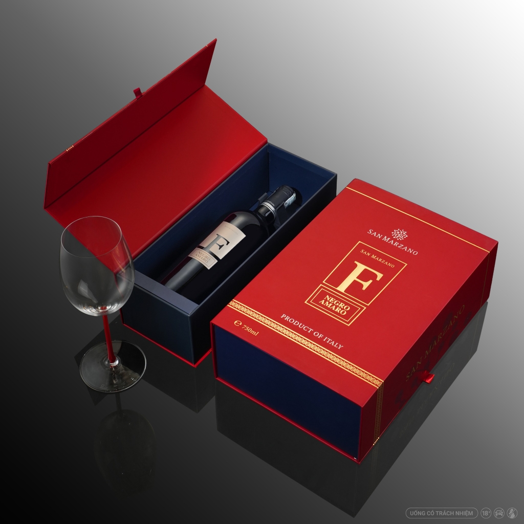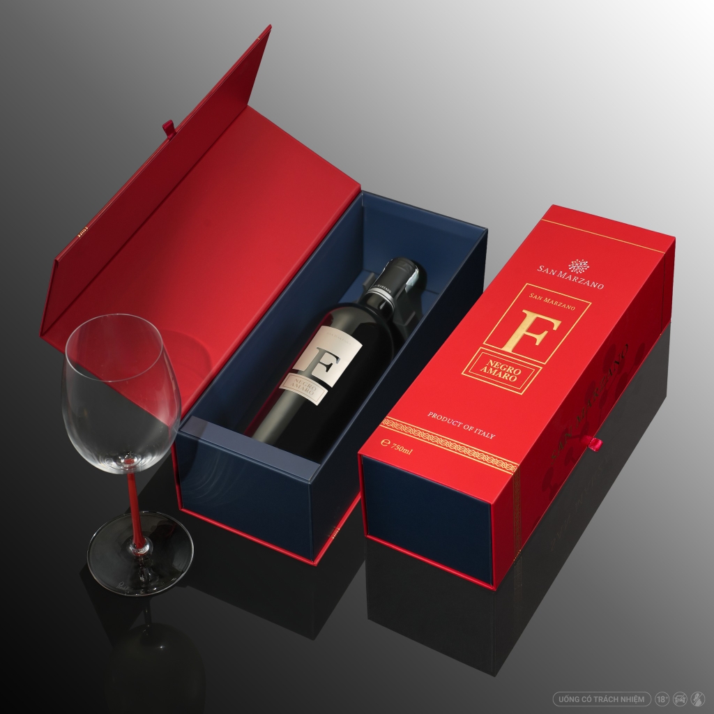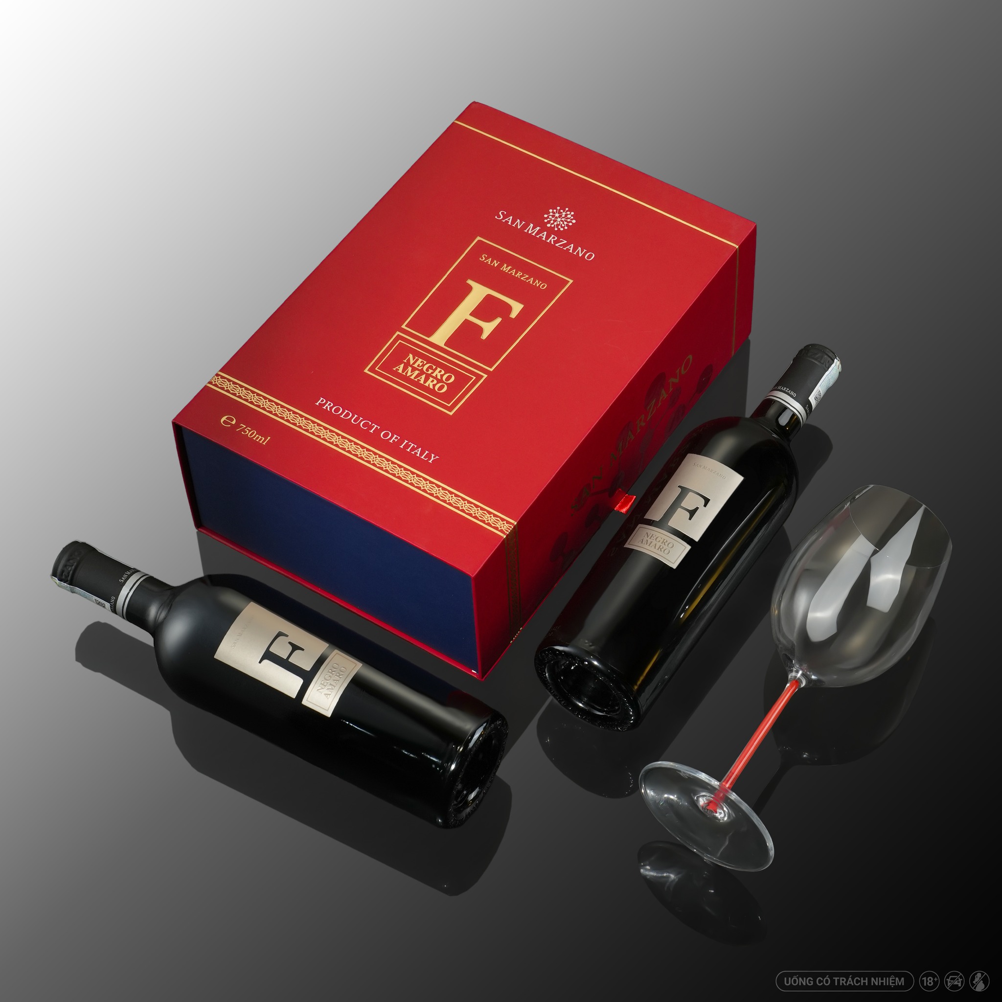 Khi kết hợp cùng hộp quà đỏ Ruby sang trọng, F Negroamaro trở thành món quà hoàn hảo - vừa tinh tế, vừa thể hiện đẳng cấp của doanh nghiệp trong mọi dịp biếu tặng.