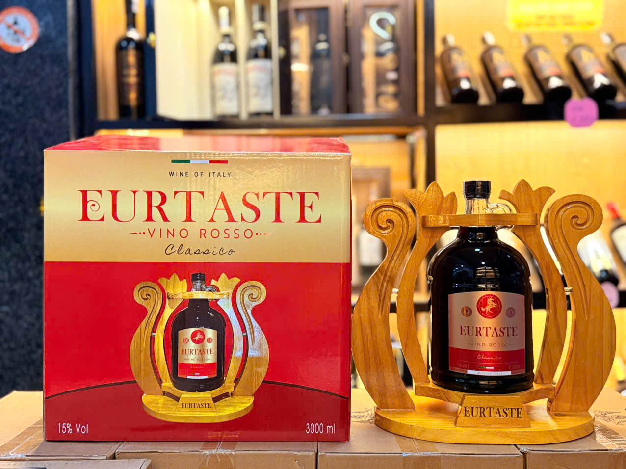 Kệ rượu vang Eurtaste Vino Rosso Loại rượu: rượu vang Ý Nồng độ: 15% vol Dung tích rượu: 3L Xuất xứ rượu: Ý