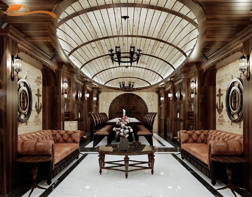 Trần , tường ốp gỗ hoàn toàn
