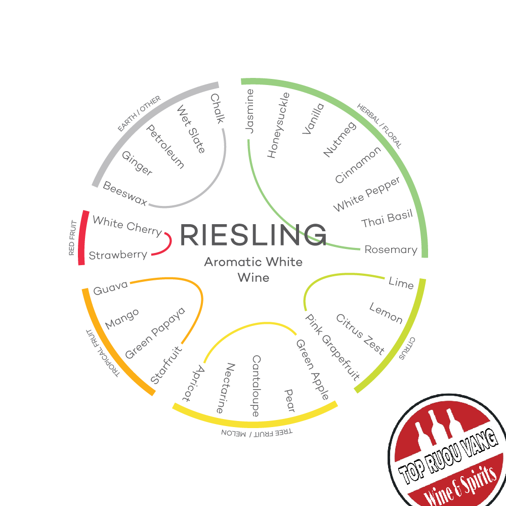- Còn nhóm mùi hoa quả họ chanh có mùi bưởi chum , cam chanh dây , chanh ta , dứa đây là những loại rượu vang trắng phong phú từ nhẹ đến đậm . sẽ là các giống nho Chardonay, Riesling , Pinot Gris , Sémillon ,