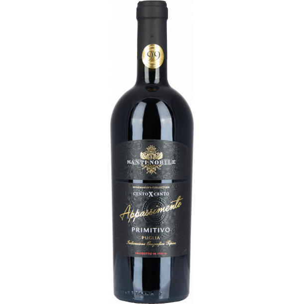 Santi Nobile là một trong những sản phẩm tiêu biểu của miền Nam nước Ý ( vùng Puglia _ Italia) được sản xuất từ giống nho Primitivo thu hoạch muộn. Rượu vang Santi Nobile Cento X Appassimento Primitivo có màu đỏ đậm, mùi thơm lôi cuốn với trái cây đỏ, nho khô và anh đào, quyến rũ và hấp dẫn trong vòm miệng. Rượu vang này thích hợp hơn với các món ăn Ý, và dùng trong nhiệt độ 16 – 18 độ C