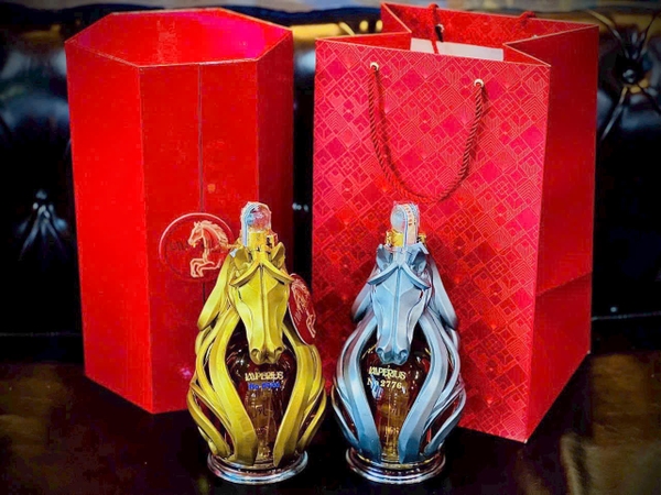 Các mẫu này thường được thiết kế tinh xảo, mang ý nghĩa phong thủy tốt lành và thường là rượu ngoại nhập khẩu như Brandy XO hoặc Cognac.