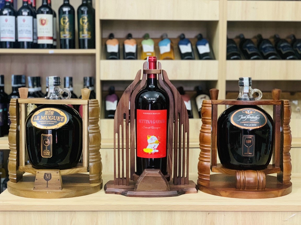Giá khuyến mãi 850K / 1 chai rượu vang 3L + kèm kệ gỗ như hình