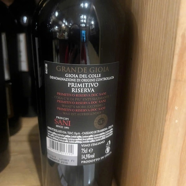 Xem thêm nhà Sx https://www.weine-giordano.de/sortiment/italien/carlo-sani/carlo-sani-carlo-sani/grande-gioia-del-colle-primitivo-riserva/