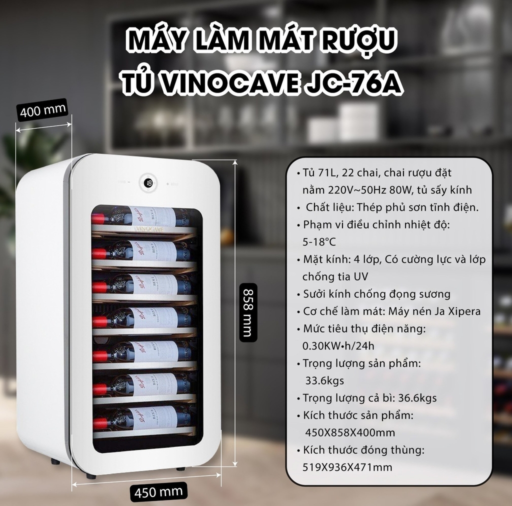Tên sp: Tủ ướp vang VINOCAVE 22 chai màu trắng